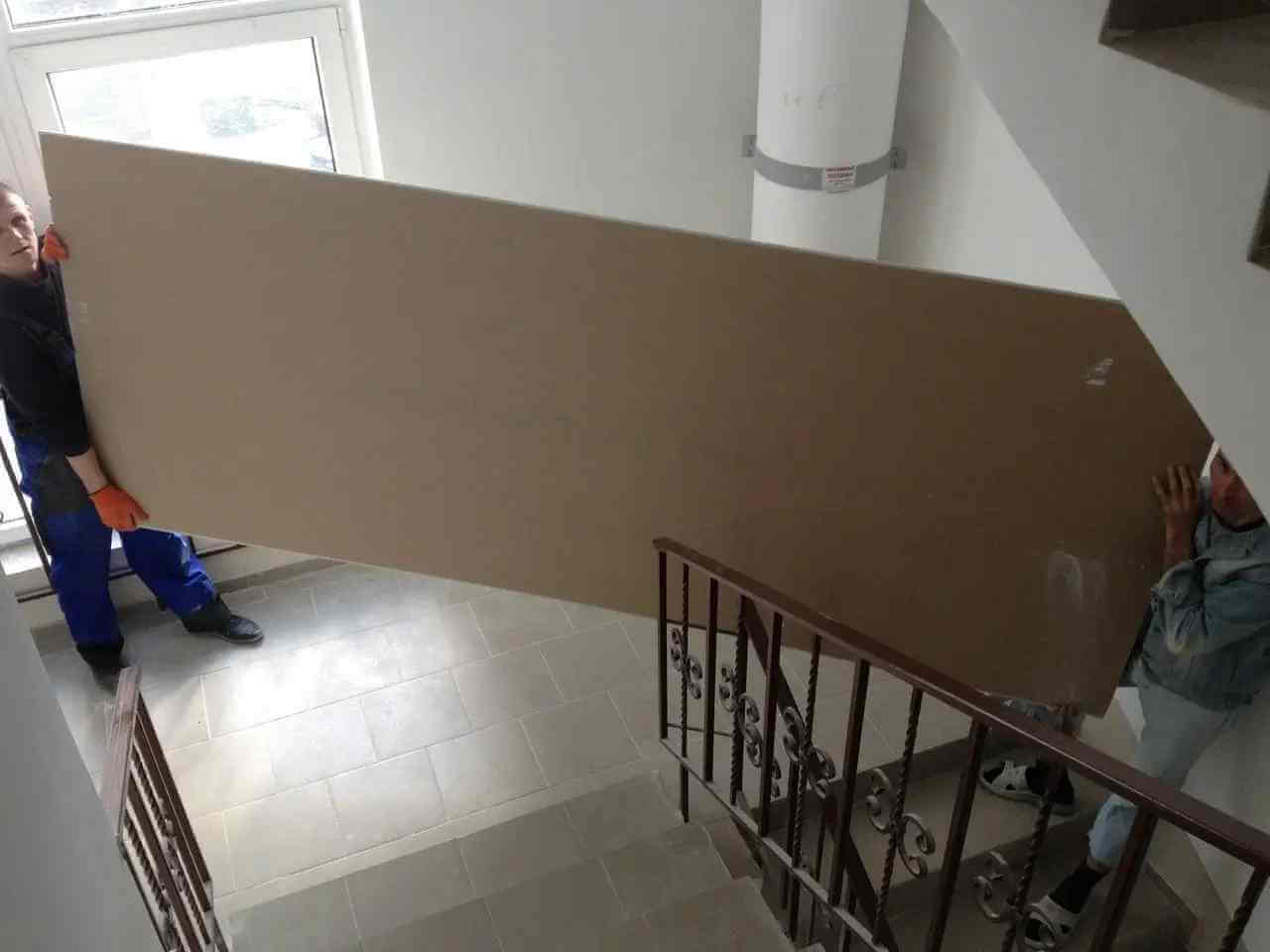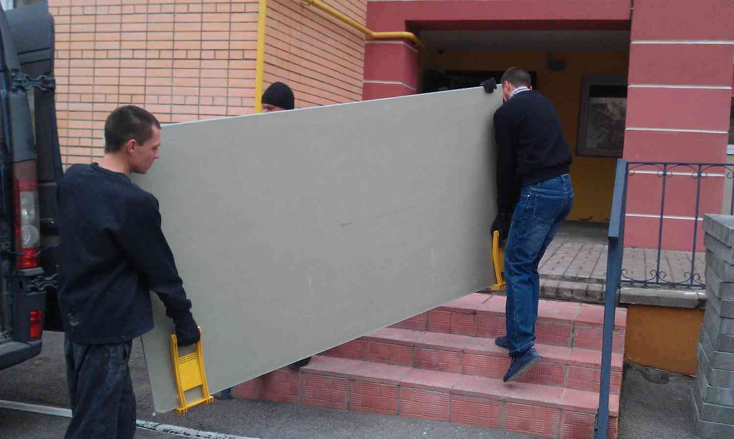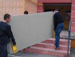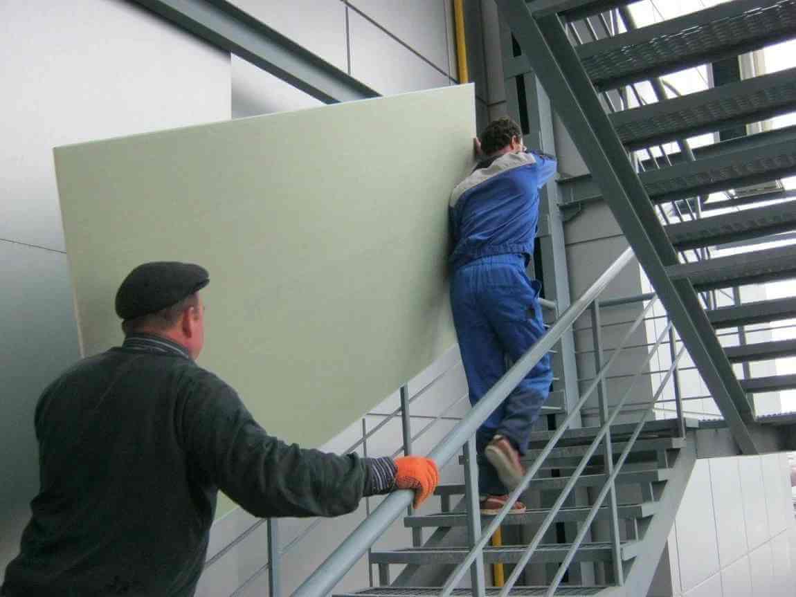 Гипсокартон строительный материал с достаточно объемной площадью, перенести который самостоятельно также не представляется возможным ввиду его хрупких свойств. Иными словами, если одному человеку взять лист гипсокартона и попытаться: перенести его, поднять по лестнице на этаж или в лифте, то велика вероятность, что он попросту сломается. И даже если привлечь к процессу выгрузки своих знакомых или друзей, риск повреждения листов гипсокартона остается по-прежнему велик, ввиду отсутствия должного опыта в проведении подобного рода работ. Именно поэтому мы рекомендуем воспользоваться профессиональной погрузкой и выгрузкой листов гипсокартона профессиональными грузчиками нашей компании, которая также может включать в себя процедуру ручного подъема на этаж.